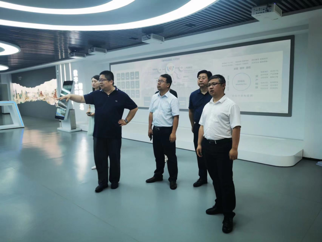 孫濤一行參觀了湖北文旅集團數字展廳,聽取了“一部手機游湖北”項目和當前在省、市(州)、縣試點建設情況,具體了解了湖北文旅大數據中心和產業(yè)監(jiān)測平臺的運行現(xiàn)狀,對湖北數字文旅集團積極開展數字化戰(zhàn)略產業(yè)布局、深耕數字文旅賽道的做法給予高度肯定。他表示,要進一步建立溝通聯(lián)絡機制,借鑒湖北文旅數字化轉型的經驗、“一部手機游湖北”項目建設模式推進宣恩縣數字化助力文旅產業(yè)高質量發(fā)展。