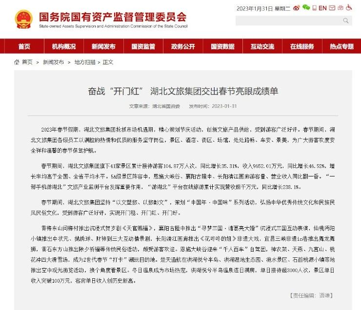 本周熱點 奮戰(zhàn)“開門紅” 湖北文旅集團交出春節(jié)亮眼成績單。2023年春節(jié)假期,湖北文旅集團搶抓市場機遇期,精心策劃節(jié)慶活動,創(chuàng)新文旅產品供給,受到游客廣泛好評。集團旗下41家景區(qū)累計接待游客104.87萬人次,同比增長35.31%,收入9652.01萬元,同比增長46.52%,增長率均高于全國、全省平均水平。5A級景區(qū)陣容中,恩施大峽谷、襄陽古隆中、長陽清江畫廊游客量、營業(yè)收入同比翻一番。“一部手機游湖北”文旅產業(yè)監(jiān)測平臺發(fā)揮重要作用,“游湖北”平臺在線旅游累計實現(xiàn)營收超千萬元,同比增長238.1%。堅持“以文塑旅、以旅彰文”,策劃“中國年·中國味”系列活動,弘揚中華優(yōu)秀傳統(tǒng)文化和民族民風民俗文化,受到游客廣泛好評,實現(xiàn)開門穩(wěn)、開門紅、開門好。 首破千萬大關,數(shù)旅集團經營新春“兔”飛猛進。兔年春節(jié)假期,是疫情防控政策放開后首個長假,旅游市場持續(xù)增長,全省游客出游熱情高漲,2023年春節(jié)期間,數(shù)旅集團各項經營指標提升明顯。從除夕到正月初六(1月21日至1月27日),數(shù)旅集團“游湖北”平臺營收首破千萬元大關,達到1008.62萬元,同比增長238.1%,服務游客過10萬人。執(zhí)行湖北文旅集團“美好生活再出發(fā)”惠民優(yōu)惠券活動,發(fā)放消費券8.27萬張約404萬元。湖北數(shù)字文旅集團加快轉型發(fā)展、搶抓文旅政策機遇,營收、利潤等主要經營指標創(chuàng)歷史性新高,內生動力持續(xù)增強,科技實力顯著提升,平臺運營成效凸顯,品牌影響力不斷彰顯,各項工作取得新成效。 湖北數(shù)字文旅集團當選湖北省數(shù)字內容服務行業(yè)協(xié)會副會長單位。2月1日,在省直機關工委、湖北省民政廳單位指導下,湖北省數(shù)字內容服務行業(yè)協(xié)會第一屆一次會員大會正式召開。會上,湖北數(shù)字文旅集團作為發(fā)起單位之一當選副會長單位,集團總經理羅圓當選協(xié)會副會長。未來,湖北省數(shù)字內容服務行業(yè)協(xié)會將順應數(shù)字內容創(chuàng)新發(fā)展趨勢,抓住數(shù)字化轉型新機遇,堅持創(chuàng)新賦能,有效整合高校智力資源、政府政策資源以及社會資本資源,搭建行業(yè)交流平臺,建立高效溝通協(xié)調機制,營造良好產業(yè)發(fā)展環(huán)境,推動技術實業(yè)結合、產學研用融合、標準體系建設等,助力湖北數(shù)字內容服務行業(yè)高質量發(fā)展。 最新資訊 ● 重慶全力推進巴蜀文化旅游走廊建設。近日,2023年重慶市文化和旅游工作會議召開,推進建設“承千年文脈、鑄人文精神、樹時代新風、強創(chuàng)新品質”的文化強市和世界知名旅游目的地。據了解,未來重慶將實施培育世界級休閑旅游勝地行動計劃,按照打造國際范、中國味、巴蜀韻的世界級休閑旅游勝地的建設定位,印發(fā)實施《重慶市貫徹落實〈巴蜀文化旅游走廊建設規(guī)劃〉實施方案》,進一步做靚都市旅游名片,加快都市旅游設施建設,提升巴蜀文化旅游走廊的國際認可度、知名度、美譽度。 ● 金馬游樂擬開展親子樂園主題相關業(yè)務。廣東金馬游樂股份有限公司發(fā)布關于擬開展對外投資事宜的公告:擬以自有資金投資不少于人民幣5000萬元受讓中山市紫馬嶺公園親子樂園項目15年的經營權,項目主要建設內容為符合項目親子樂園主題的相關業(yè)務及項目設置的相關游藝游樂設備。據金馬游樂表示,本次對外投資事宜符合公司的總體發(fā)展戰(zhàn)略和未來發(fā)展需要。 ● 國內首家小王子主題樂園正式動工。近日,位于廣州黃埔區(qū)的中法創(chuàng)意永續(xù)農業(yè)產業(yè)項目暨小王子主題樂園正式動工。據了解,該項目融合法國浪漫元素和設計理念,以法國童話名著《小王子》故事性為基底,對標法國小王子主題樂園,打造國內首家、也是全球第二家小王子主題樂園,項目邀請迪士尼、環(huán)球影城的主設計團隊共同主導創(chuàng)意設計,從游樂設施、體驗內容、科技應用、景觀環(huán)境等進行全方位升級,通過文化植入、價值再造,輸出黃埔文化IP,打造廣州首個中法農業(yè)全產業(yè)基地,計劃于2024年竣工并全面運營。 ● 廣西旅發(fā)集團與大有數(shù)字達成戰(zhàn)略合作。近日,廣西旅游發(fā)展集團與大有數(shù)字資源有限責任公司簽署戰(zhàn)略合作框架協(xié)議。根據協(xié)議,雙方將充分發(fā)揮各自優(yōu)勢,通過合作形成優(yōu)勢集成與互補;在合作內容方面,雙方將進一步明確擬投項目清單,提前做好資金鋪排計劃,充分利用各自的資金、資源、信息等方面的優(yōu)勢,共同推進文旅、大健康產業(yè)、數(shù)字化及基礎設施建設等領域合作事項的落實,積極加強資源整合力度,強化合作,共同推動項目發(fā)展,實現(xiàn)合作利益最大化,全力推進合作框架協(xié)議落地。 ● 蘇州鼓勵創(chuàng)新文旅消費促銷模式和營銷手段。近日,蘇州市人民政府印發(fā)《關于推動經濟運行率先整體好轉的若干政策措施》,明確支持舉辦文旅消費活動,鼓勵創(chuàng)新文旅消費促銷模式和營銷手段。據了解,蘇州將評選一批蘇州市文旅消費優(yōu)秀活動,給予不超過其實際投資額的20%、最高不超過30萬元的獎補;鼓勵支持各地發(fā)展夜間經濟,對建成國家級、省級、市級夜間文旅消費集聚區(qū)的