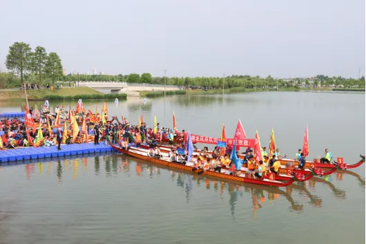 湖北省龍舟公開賽武漢東西湖站在杜工湖收官。近日,“甲辰龍騰 盛世中華”2024年全國龍舟大聯(lián)動活動暨湖北省龍舟公開賽(武漢·東西湖站)在武漢市東西湖區(qū)杜公湖國家濕地公園圓滿收官。本次比賽是本年度湖北省與中國龍舟協(xié)會攜手全國龍舟大聯(lián)動的首場龍舟賽,也是湖北省歷年來舉辦的參賽人數(shù)及隊(duì)伍最多、規(guī)格最高、規(guī)模最大的龍舟賽。來自武漢、仙桃、洪湖、黃石、嘉魚等地市,華中科技大學(xué)、湖北經(jīng)濟(jì)學(xué)院、武漢商學(xué)院、長江大學(xué)等高校,以及武漢海關(guān)、省知識產(chǎn)權(quán)局、武漢臺協(xié)、武漢市農(nóng)村商業(yè)銀行等省市直機(jī)關(guān)的45支代表隊(duì)、1000余名運(yùn)動員在賽場展開激烈爭奪,上演龍舟爭霸盛況。