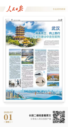 《人民日?qǐng)?bào)》整版報(bào)道武漢發(fā)展成就。2024年武漢GDP超2.1萬(wàn)億元,增長(zhǎng)5.2%,外貿(mào)規(guī)模突破4000億元。武漢加速轉(zhuǎn)化科教人才優(yōu)勢(shì),全球創(chuàng)新集群排名第13位,籌建產(chǎn)業(yè)創(chuàng)新聯(lián)合實(shí)驗(yàn)室。交通樞紐建設(shè)方面,陽(yáng)邏港集裝箱吞吐量238.1萬(wàn)標(biāo)準(zhǔn)箱,中歐班列發(fā)運(yùn)1008列,天河機(jī)場(chǎng)多項(xiàng)指標(biāo)居中部第一。生態(tài)治理成效顯著,長(zhǎng)江武漢段水質(zhì)連續(xù)5年Ⅱ類(lèi),“武碳江湖”用戶(hù)達(dá)160萬(wàn)。文旅融合方面,黃鶴樓、東湖等景區(qū)吸引大量游客,“光谷光子號(hào)”空軌成新地標(biāo)。武漢市擇高而立,在支點(diǎn)建設(shè)中走在前列。