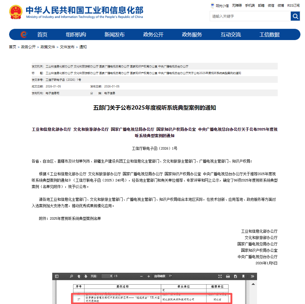 首例!數(shù)旅集團“逍遙武當”項目躋身兩項全國典型案例名單。近日,工業(yè)和信息化部科技司、教育部科學技術與信息化司、文化和旅游部科技教育司、國家廣播電視總局科技司聯(lián)合公布了“2025年元宇宙典型案例名單”;工業(yè)和信息化部辦公廳、文化和旅游部辦公廳、國家廣播電視總局辦公廳、國家知識產權局辦公室、中央廣播電視總臺辦公廳聯(lián)合公布了“2025年度視聽系統(tǒng)典型案例名單”,數(shù)旅集團“逍遙武當”項目在兩項典型案例評選中均成功入選。