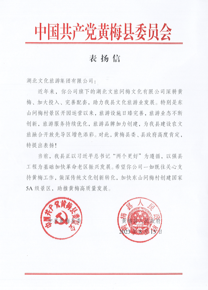 智旅動態(tài)周報 第147期|湖北文旅集團獲黃梅縣委縣政府點贊